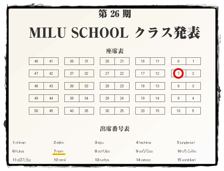 何気なく見たスクール26期の座席表・・・