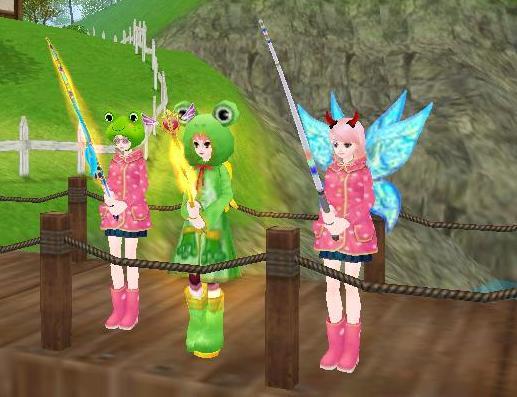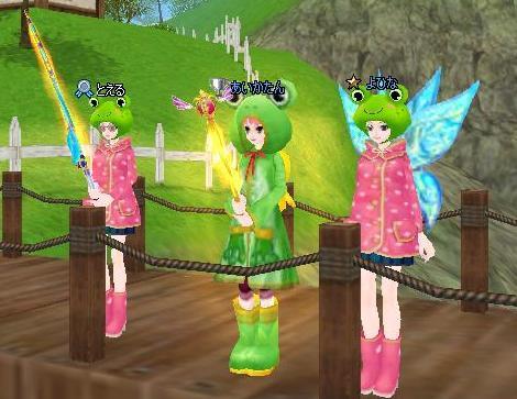カエル3匹並んで仲良く釣りー♪