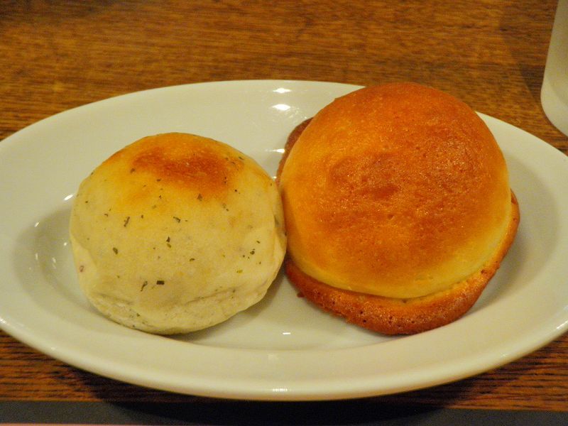 「鎌倉パスタ」の「(焼きたて)パン食べ放題」と季節のパスタでしゅ (*´-д-)フゥ-3