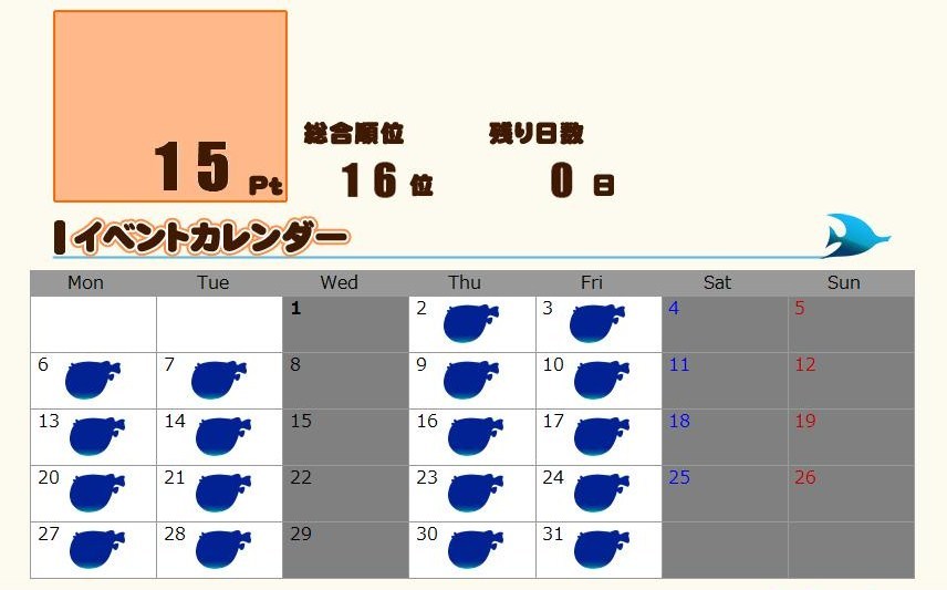 5月のイベ王で、初めて15ptを獲得しました。