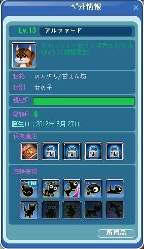 | ペットいっぱい、LVUPおめでとーー^^v |
