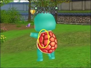 図の黄色い○の中が少し赤いものが見えているでしょ?これがカッパの甲羅でした