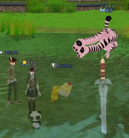 近くの水中に剣が刺さってるのを発見し、 トラがんばった。