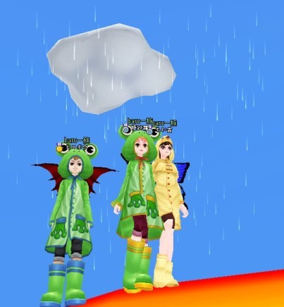 ちい吉さん、ヒロボウさんとレインコートで雨に打たれたり・・・
