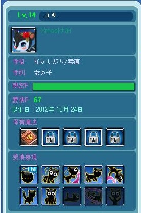 1時前くらいに起きてペットの世話をしたら、ユキがLv14になりました。