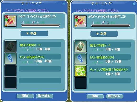 草を使うときは、パワーor幸運を選択した後に対象の草をダブルクリック