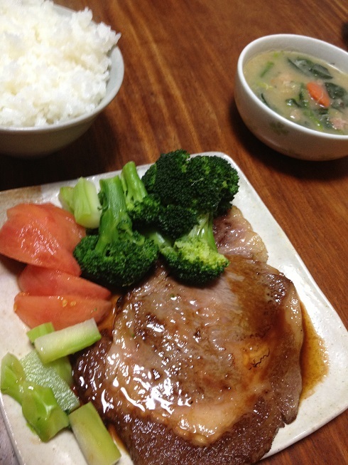 昨日は岩手県産黒毛和牛のステーキ!と、クリームシチュー。