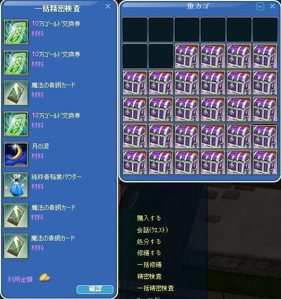 材料貧乏なので、普通の魔箱を開けるべく・・魚籠の精密を・・