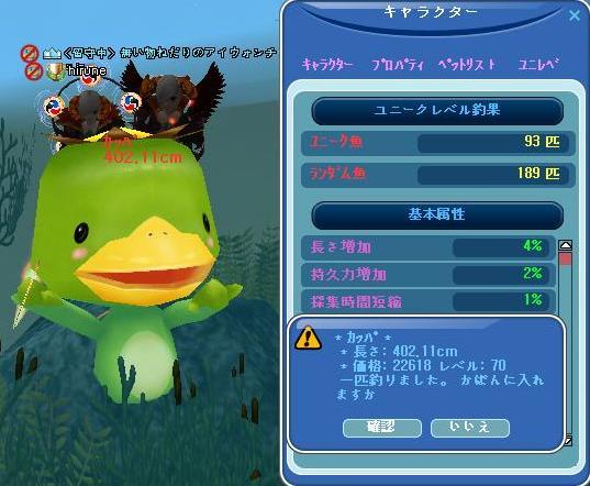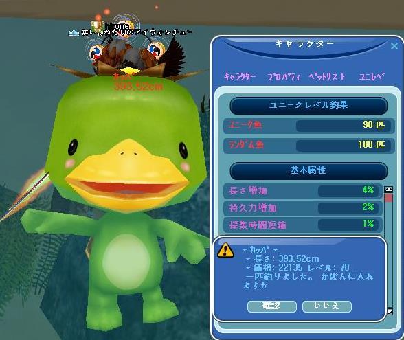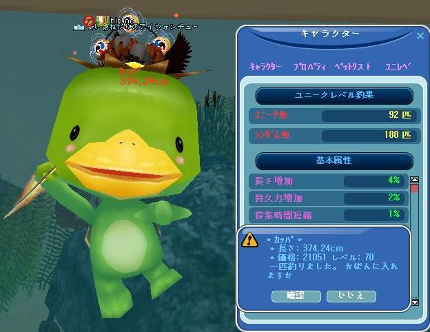 高額で取り引きできると伺って・・売ってしまったけど・・(。-∀-)ィヒ♪→調合しても・・大したモノは出ないけど・・・材料は、嬉しいです♪ だーりん❤と、まった~り♪日曜日の夕方、ゴロゴロ雷が鳴って・・お外でご飯だったので出掛けてきました~帰る頃には、雨も上がって・・青空出てましたね(19時過ぎてたけど・・・wお家に戻って、MILUするも・・眠くて・・・横になったら、ガン寝しとったぁあああああああああああダー待ち草臥れて・・・寝んねしちゃった(。´・ω・)(・ω・`。)ネー・・・グスン。。。アタイの属性・・・こんなだったw もう、クラウン切れちゃったけどねwwそれにしても・・ カッパが・・・よう釣れた♪ひとカゴに、3匹って・・・カッパ家族の里帰り・・かなww精密結果は・・・イマイチどした、、、はっはっはぁ~ぁwそして、日付変わって・・またカッパちゃん♪ (。-∀-)ィヒ♪今日は・・・海の日なのね~へぇ~w続く・・w