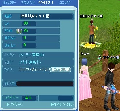 その後0鯖戻ってラデ君に飛んだらMILU★テスト用さん&君が走り回ってました。