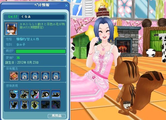 日付変わってお世話したらくるみがLv17になりました。