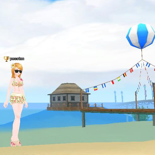 (*´∀`*)ノ=こんちは~♪ 今回のイベは 夏!!水着がたまりますね~^^ こんな所に建物が・・・・海の家?? ビジュルみたいに竿がおいてありますね~ww