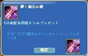ログイン報酬の輝く魔鍵は5個届いてました。