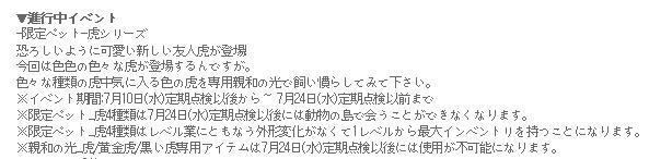 3番目の※印のところ。「※限定ペット_虎4種類はレベル業にともなう外形変化が