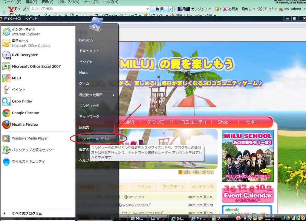 2、コントロールパネル クリック