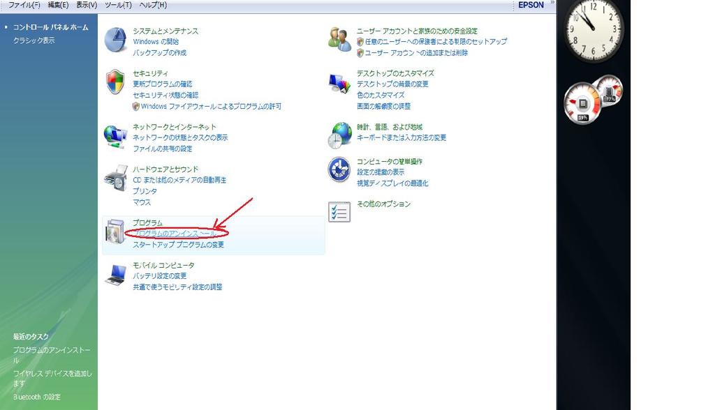 3、プログラムの中の プログラムのアンインスツールをクリック