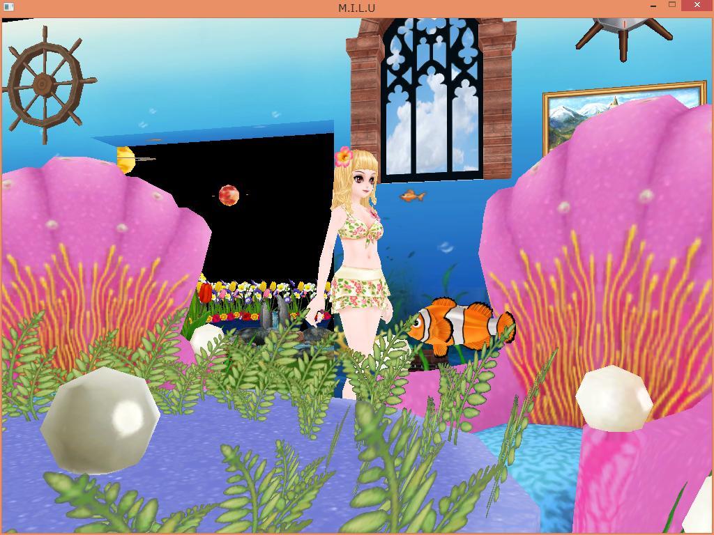 壁紙変えて、海中のつもり「お魚さん、こんにちは!」