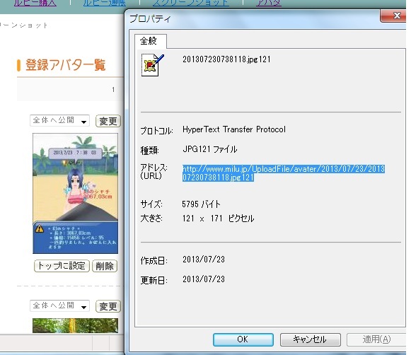 A:アバ一覧のアバ画像を右クリックしてプロパティ→アドレス(URL)をコピー