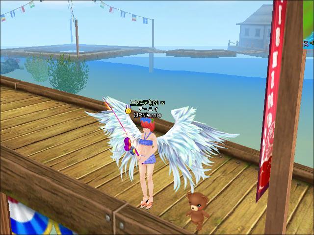 まわりに人がいなかったので、羽出して釣ってみました!!