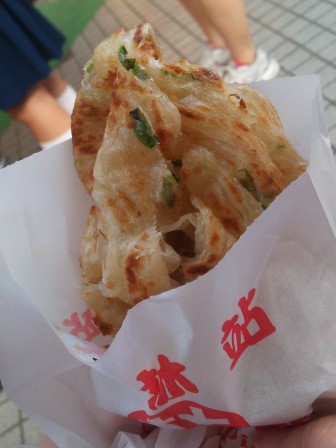 昨日、おもちかえりにして、冷めちゃって、ちょっと失敗した葱抓餅。