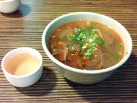 麻辣ってんで、辛いの想像してたけど、あんまり辛くなく、血とかレバーの臭みもクセもなくさっぱりとした塩味でした。