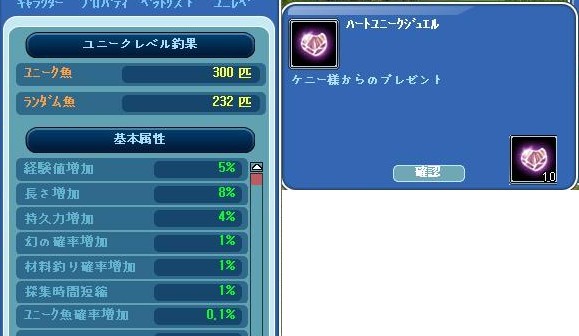 ちっさいピンクカッパ釣って籠にしまうとハートジュエルが飛んできました。