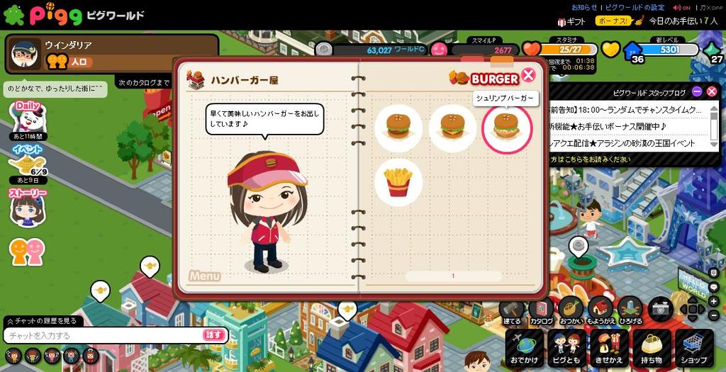 ピグの方ではハンバーガー屋オープンしたので、そちらの方で(自動で)頑張ってもらいます^^