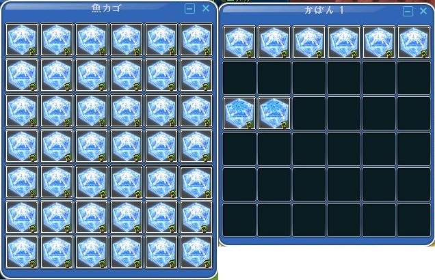 今回のイベでは48入り魚かごと、42入りカバンが調合できるのが嬉しいです