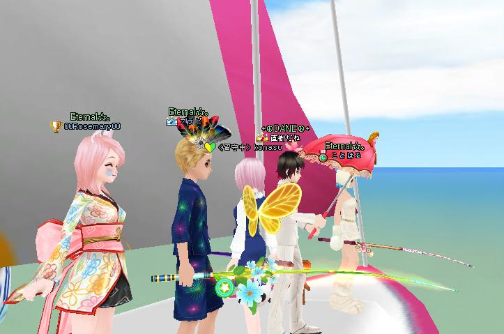 不思議な踊りが流行ってますねw このSSでは一番手前のマリーが起き上がりこぼしのように踊っていますw コアラの抱っこエモーションはまだ見てないなぁw こなっちゃんは前日27時までインしてた影響で寝てるんだと思いますw
