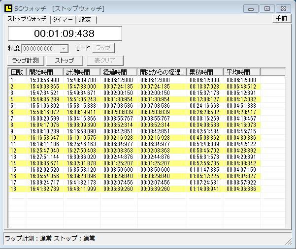 フリーのソフトでストップウォッチを見つけたので入れてみた。