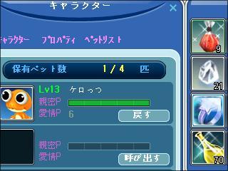 唯一のペットの”ケロっつ”が、LV13になって力持ちになった。