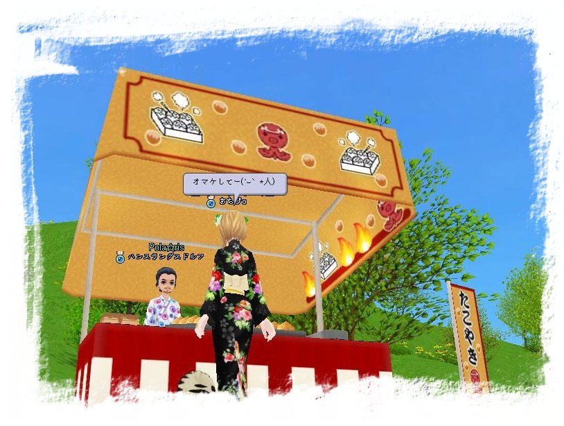 たこ焼きくださいなーヽ(´▽`)ノ 「100万円」 おまけしてー(´◡`*人) 「オマケしないよ」 だってil||li _| ̄||○ il||li  夜の飾り付けもとってもきれい(*n´◡`n*) みんなで盆踊りしたいなー(*′艸`*)♪