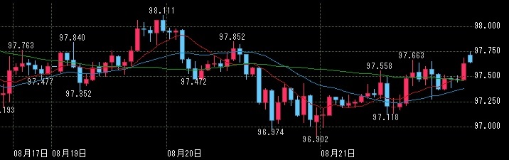 今週は、97.5円を挟んで上下する程度であった。