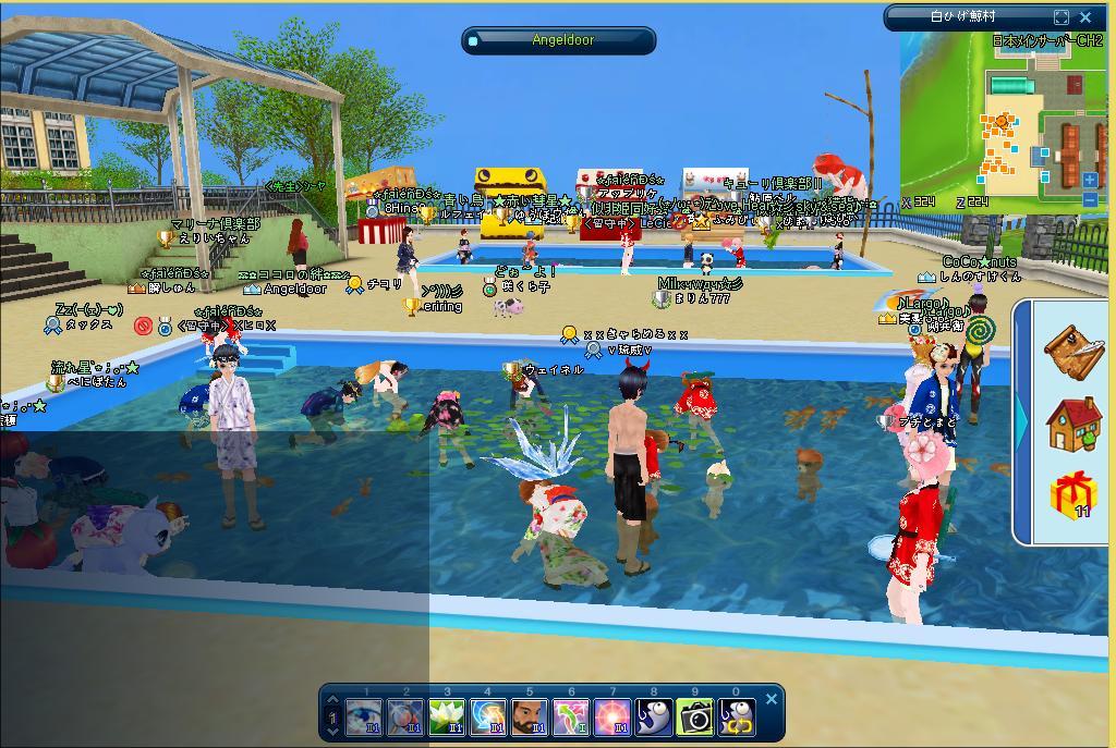 お祭りコレクションブックⅡ完成しました。金魚すくいのプールがあちこちにできていますね。金魚すくいでイベントはっぴなど手に入りました。イベントのはっぴはわっしょいができるのがいいですね。