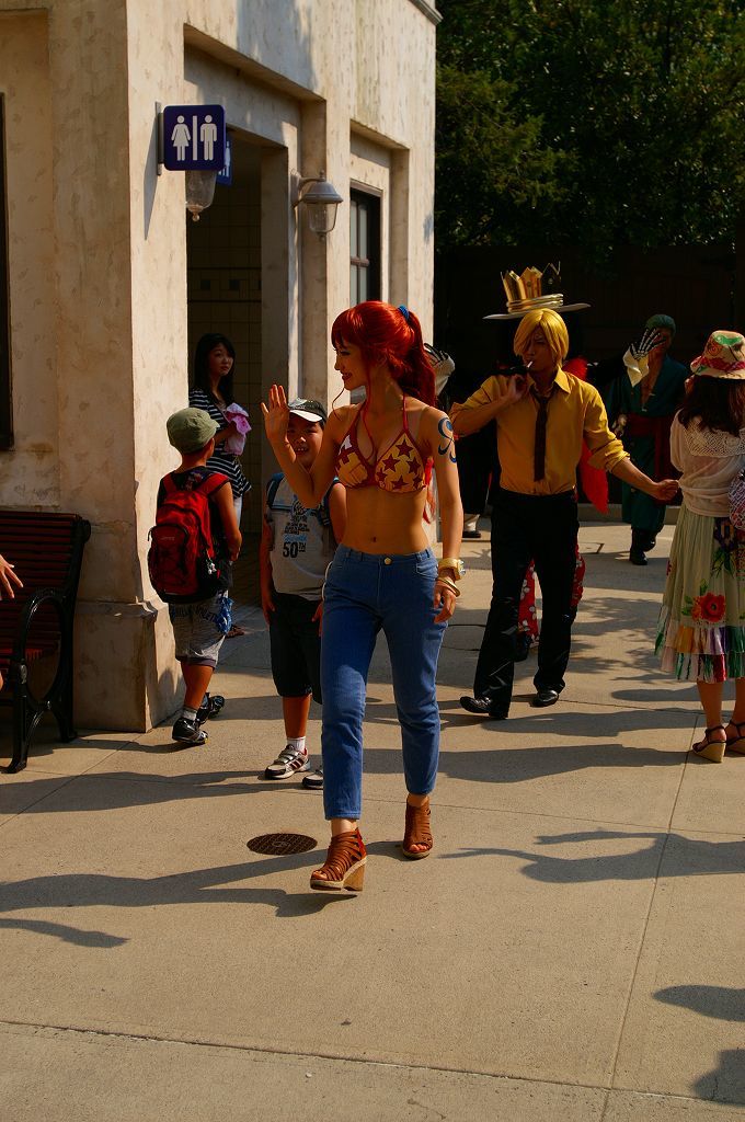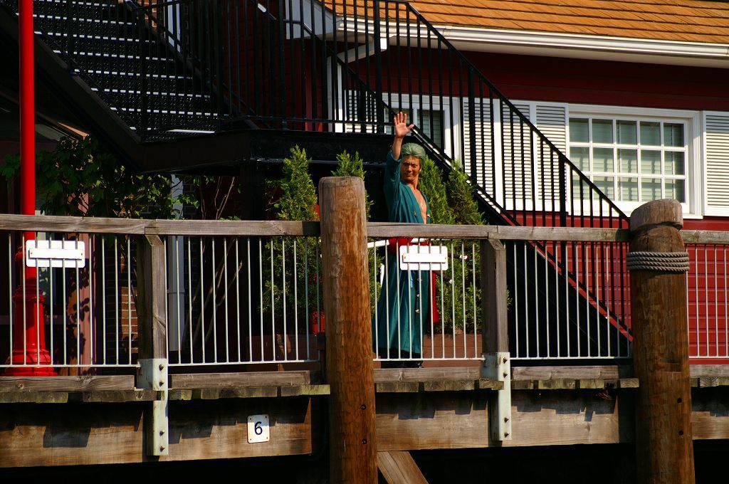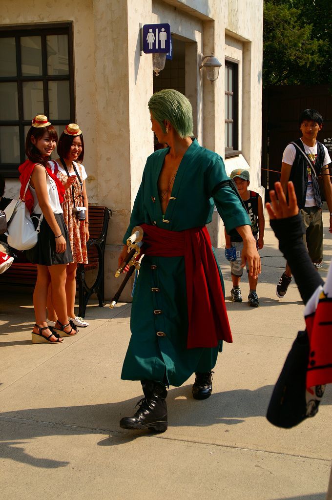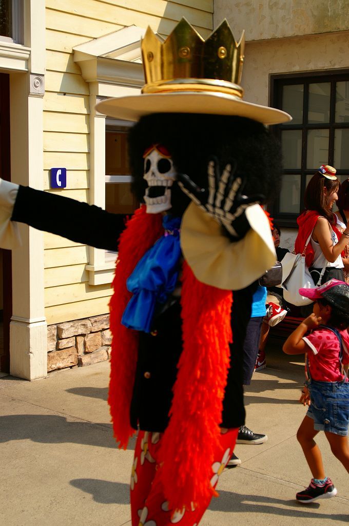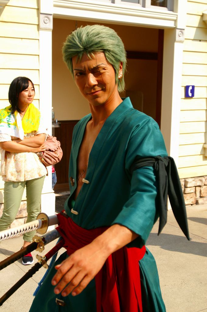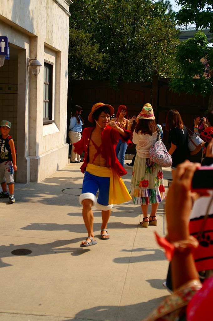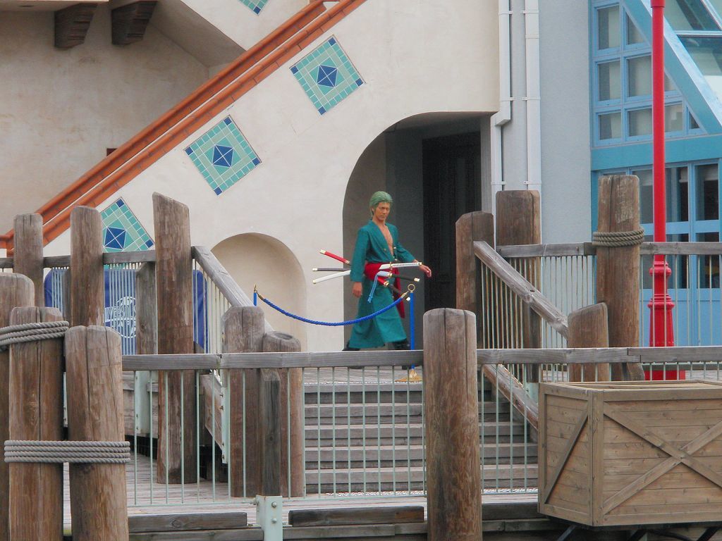 サンジの海賊レストランで行われるミニコント(声優当て振り)と記念撮影に向かう麦わらチーム♪ ルフィ・ナミさん・サンジ・ブルック・ゾロの面々・・・クルー専用ゲートから、会場のロンバーズランディング迄の移動を狙った「入り待ち」「出待ち」ワンピース&USJキャストファンが、時間になるとワラワラ集まる中悠々とファンに見送られ移動中(≧▽≦)ゞ 今年の開催分から新たに加わった「ロロノア・ゾロ」は、原作やアニメでも方向音痴で迷うというキャラ設定どおり、サンジの海賊レストランでも会場周辺を放浪(始まって20分頃ロンバーズランディング周囲を歩き回る)して窓から中を伺い登場するが、プレミアショーのゾロより格好良いと思う Ψ( ̄∀ ̄)Ψ ロンバーズランディングへ向かう途中、迷って放浪している「ロロノア・ゾロ」だが・・・時間が来ると2階の待機場からおもむろに登場も周囲に対しても挨拶は欠かさない ( *^皿^) こちらは、ロンバーズランディング南側ワーフカフェのテラスから・・・ 後半は、ジュラシックパークのリフレッシュエリアから・・・ とまぁ、この様な光景の後ロンバーズランディング内では麦わらチームの宴と記念撮影が行われ約60分後にクルー専用ゲートへと出て行かれるのを1回として、サンジの海賊レストランのチケットを買えなかった人々が「入り待ち」「出待ち」の5往復を狙っているのです∑(゚д゚;)