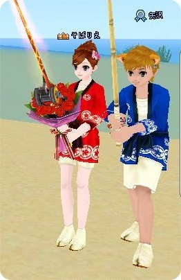 そばちゃんの花束と竿が合体してました!