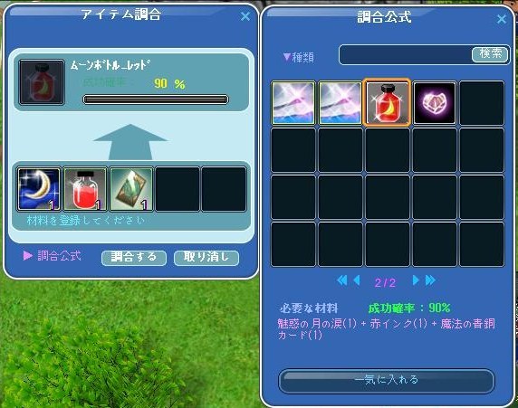 調合で作るムーンボトルは 50%の確率で ベースアイテムが消えるのですが・・・