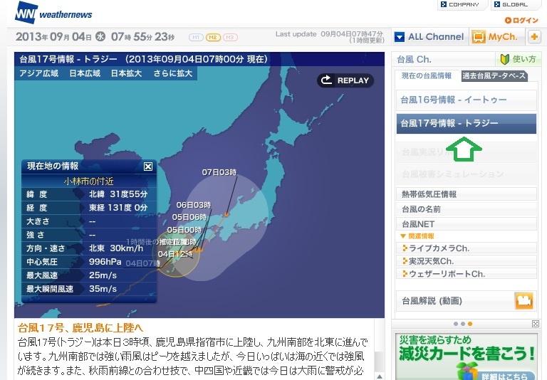 台風17号 私の愛称@@ シーチャンが呼んでくれてる名と同じ^^; 「トラジー」