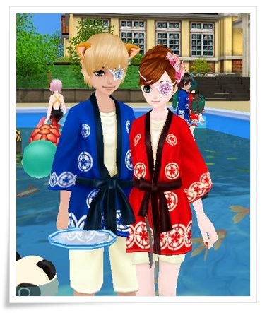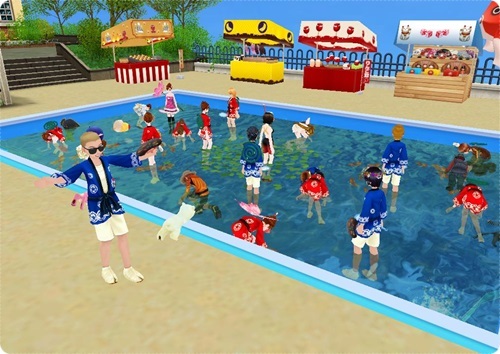 プールサイドにはテキヤになった息子、晴男くんの姿が・・・(しかも踊ってる)