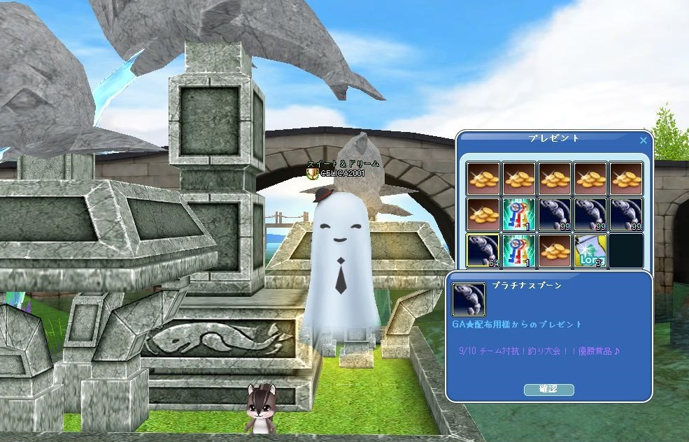 12期1組は「Team C」で参戦♪その前の「チーム対抗③マボ24H」での平均釣果0.007ピコ差の2位だっただけに とっても嬉しい結果・・・でもネ、マボんときみたいに釣れなくて、平均釣果以下だっただけに | 柱 |ヽ(-´ω`-。)反省 ホント、足を引っ張らず負けなくて良かったぁぁぁぁ ホッ(*´-д-)=3 ででで、遅まきながら遊園地がでけたってコトなので、ロイからクエストもらってチョッチ散歩♪