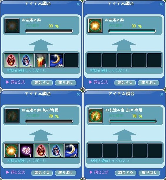 仲間になりにくいとのことなので・・・友素を15個作ってカッパ専用にグレードUP