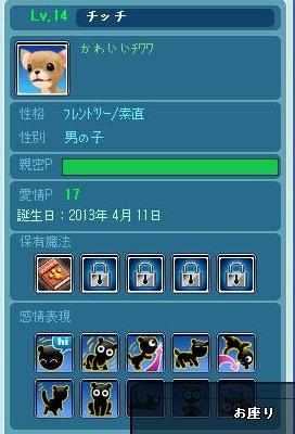 チッチにごはんをあげたらLv14になりお座りを覚えました。
