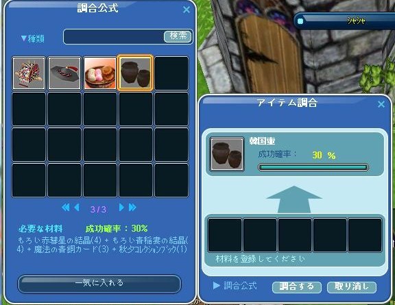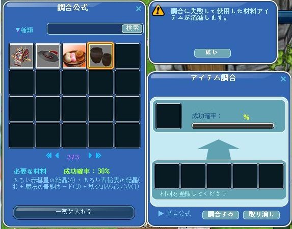 材料の赤結晶が足りなくて、1000万程使って購入