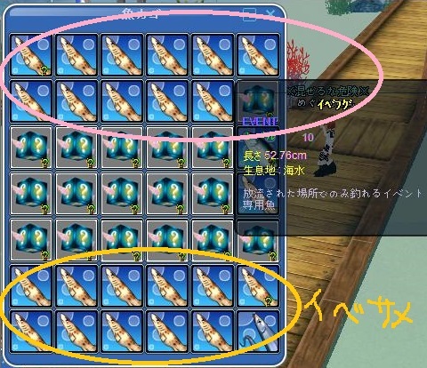 ヒットから釣り上げまで早い普通竿で釣ろうとしたんだけど、ウッカリ入賞狙ってイベ竿で釣ってた。