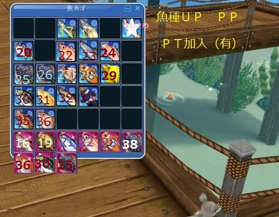 この装備で挑戦!!! 結果は。。。。  LV17~36のお魚が釣れました。。 にしても、まぼ 少ない。。(p_-) 今日からまぼ釣りに励みます~