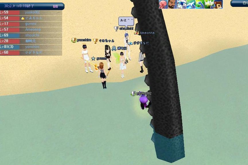 クエストは終わったけど 今回はお洋服は出ませんでした、残念(;一_一) ぐみちゃん達とタコしようとしたら とんでもないバグに遭遇。 タコができないのです。 アメを投げても(もちろん投げてもいいところ) タコが出ないのです 最後には