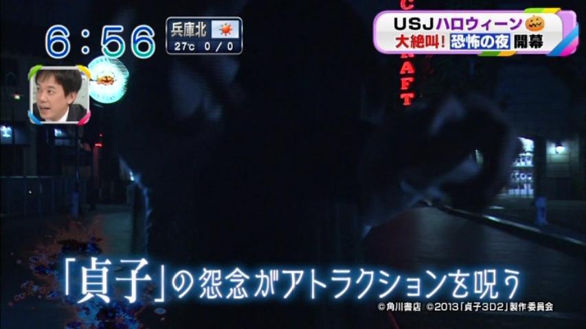 本日の「SURPRISE HALLOWEEN」の「HALLOWEEN HORROR NIGHT」のネタばれゴメンヒェε=Σ(`д´;ノ)ノ体験記詳報レポートでしゅが・・・ 本来なら、「「ターミネータ2~貞子Ver」と行きたいところでしゅが、本日2回目の挑戦であっさり内容が変更されており、以前の「貞子」のストーリーをストーリーテラーが語る「怪談」から「心霊現象研究所」の発表会というスタイルに・・・ なので、ホラーレベルが過小評価と個人的に思う、最恐「☆☆☆」に匹敵する新しい感覚のウォークインアトラクションの「バックドラフト~貞子Ver(改)」をお届け致しましょう♪ この「貞子Ver」は、セットこそそのまま使用しスクリーンを使って映像で心霊現象を科学的に分析した結果を否定的見地から発表する途中、その否定的解説をあざ笑う様に「貞子の呪い」なのかギミックで恐怖心を煽ります・・・ヒィー(>ω<ノ)ノ ※このギミック作動で来場者の子供が泣き出すハプニング(仕込みか?)で会場内はザワ付きます ココで、次の部屋へと移動しココでは「呪いの動画」について解説しますと、研究員の話術で「呪いのビデオ」を1週間前に観たが何も起こっていないと豪語した瞬間 スクリーンに映像が映し出され急に始まった画像を静止する様なやり取りの末、サブ室に画像を止めるべく場を離れたアト音声のみが会場に流れ、ナニやら争う音と叫びと共にステージ後方へ上部から研究員らしき人形が落とされ、背後の部屋に「貞子」らしき人影の演出、アタフタ((ヽ(;´Д`)ノ))アタフタするキャストの緊急事態を告げる案内と共に出口へと誘うのですが・・・ コレで終わりと思いきや、セットの奥に井戸があり中から「貞子」が登場・・・暫くはセット内で動いて居るのですが、徐に以前に無かった通路をたどってセットを迂回しコッチに向かって来て、間もなく目の前に来るという段階で部屋の照明が落ち真っ暗闇となり数秒後地面が落ちて終了と思った瞬間、スポットライトが当たったところに「貞子」の姿がぁぁぁぁぁぁぁぁぁぁぁ・・・ で、出その「貞子」瞬間に走り一気に前列隙間を走りきって照明がまた落ちて真っ暗となって、次に照明が点いた瞬間「貞子」が目の前から消えており全てが終了となります 前回は目の前にに居たから超ビビッたけれど、今回は迫り来る「貞子」に鳥肌が立つほど恐怖でビビッたぁぁぁぁぁぁぁぁぁぁぁぁΣ(゚д゚lll) この「バックドラフト~貞子Ver」は、案内のキャストさんの話術といい、「貞子」が迫り来る動きといい、観覧場所で恐怖レベルを調整できるし「お化け屋敷」の新しい恐怖体験としてはお奨めです(≧▽≦)ゞ 「その場は驚くけど時間が経てば楽しい?」 (||゚ω゚||)新感覚♪だ・・・