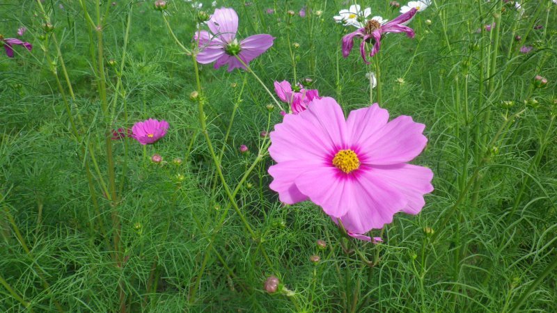 コスモス 10月下旬に合わせて種まきしてあるので、3分咲きといったところでしょうか?
