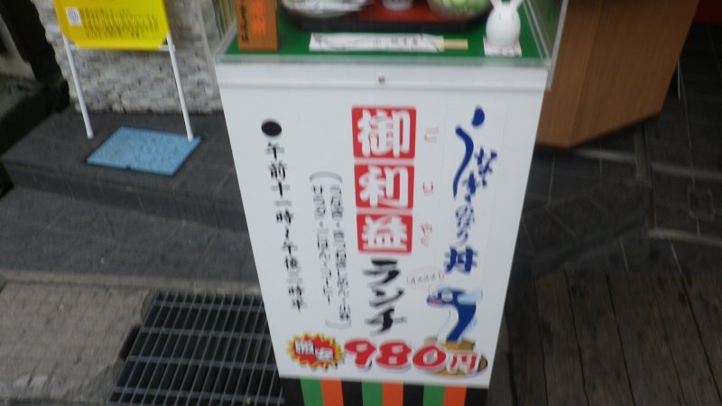 ご利益 ランチ(コーヒー付き) ¥980 串に刺さっているのがうなぎ