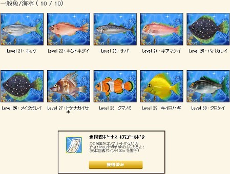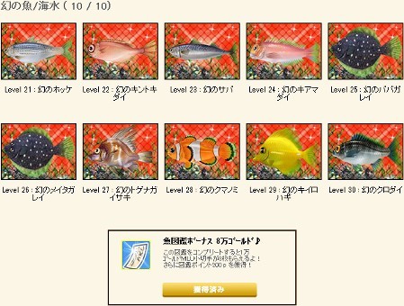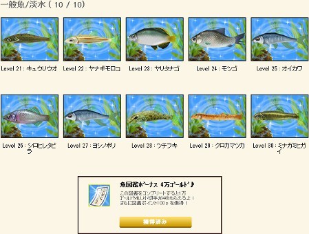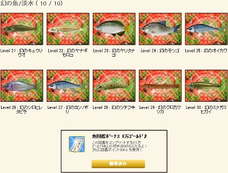 それならせめて冠する数字(レベ30竿なら)のレベル10種分(レベ31~40)の魚が